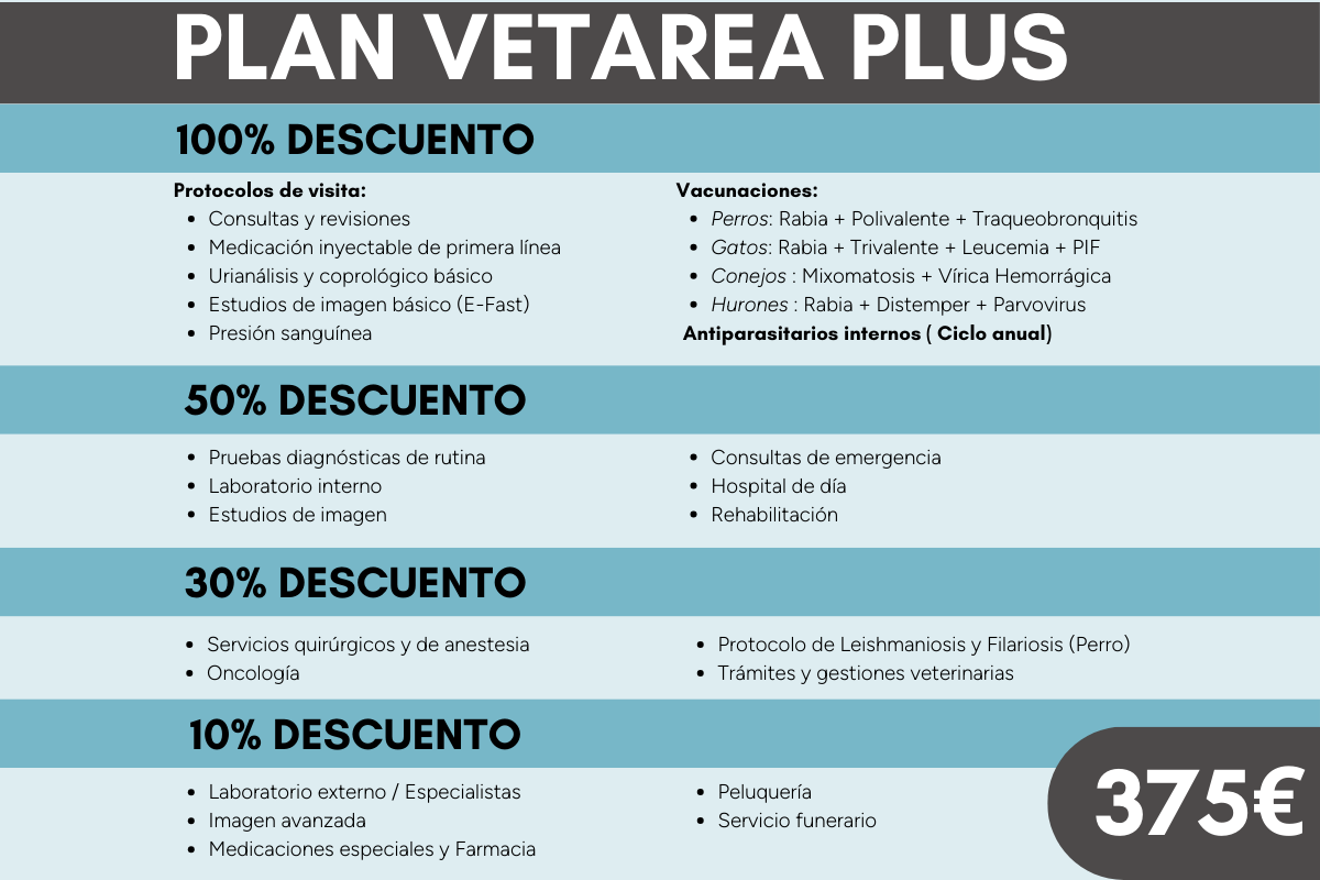 Los planes de salud o seguros sanitarios para mascotas están diseñados para ofrecer una garantía de atención fundamentada principalmente en la prevención, cuya aplicación principal es a través de vacunas, desparasitaciones y revisiones periódicas. Adicionalmente los seguros disponen de descuentos porcentuales que se aplican a diferentes tratamientos , pruebas diagnósticas u otros elementos especificados en cada plan, de esta forma supone al tutor de la mascota un ahorro importante y un seguimiento regular por parte del profesional ya que las visitas al centro veterinario son más constantes.